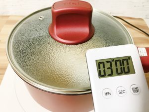 ⓸蓋を閉めて3分間蒸らします。