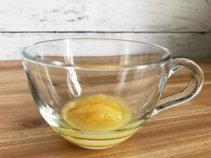 ⓶温めたカップに100%オレンジジュース5mlとオレンジジャム10gを入れます。